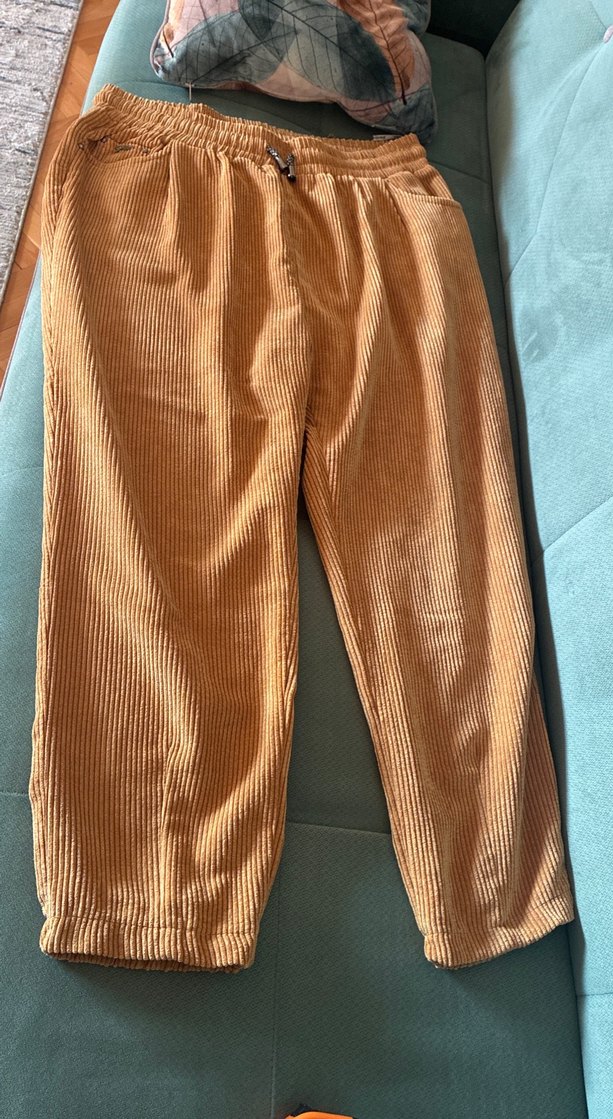 Kadınlar için kahverengi kadife kumaştan, salaş kesim ve pileli tasarıma sahip pantolon. Midi boy ve rahat, günlük kullanıma uygun tarzda.hiç giyilmedi boy 100 basen ön 65 bel 96 belden ön ağ 37 arka ağ 49 rahat kalıp fitilli