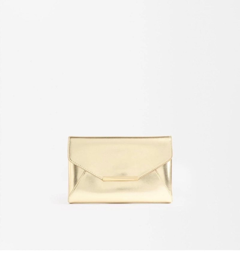 Kadın Altın Renk Parlak Deri Clutch Çanta
