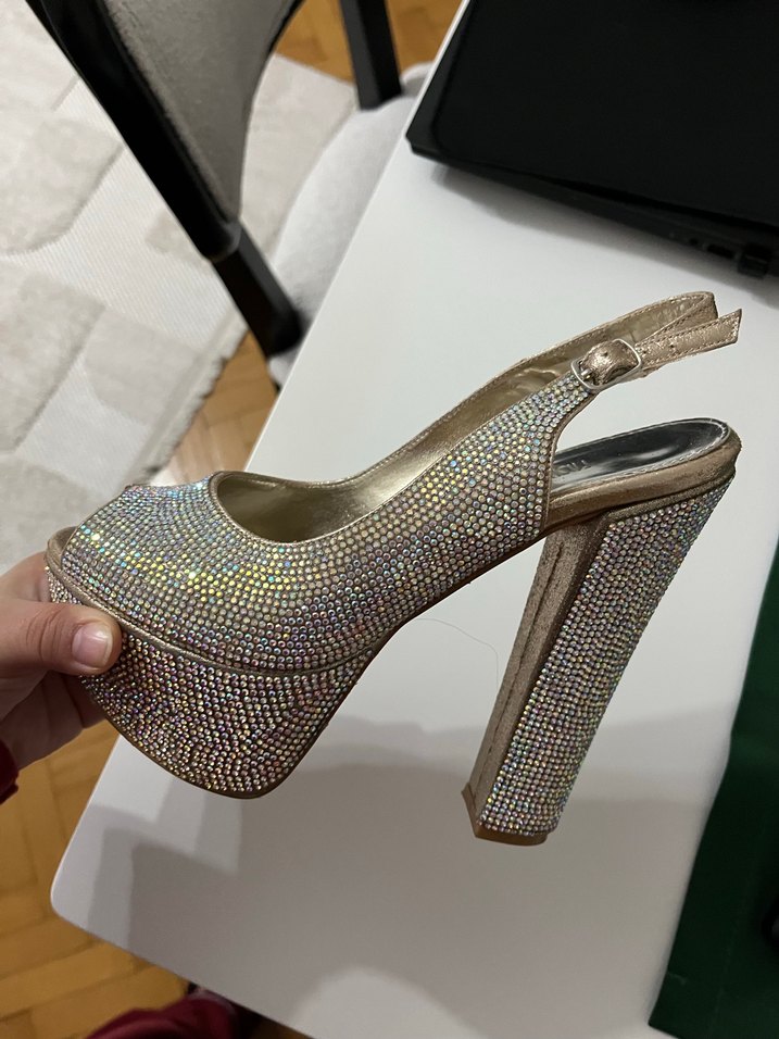 parlak taşlı platform topuklu 1 kere düğünümde giydim platform olmasından kaynaklı çok rahattı 16 cm topuk boyu var herhangi bir kusuru yok tam kalıp