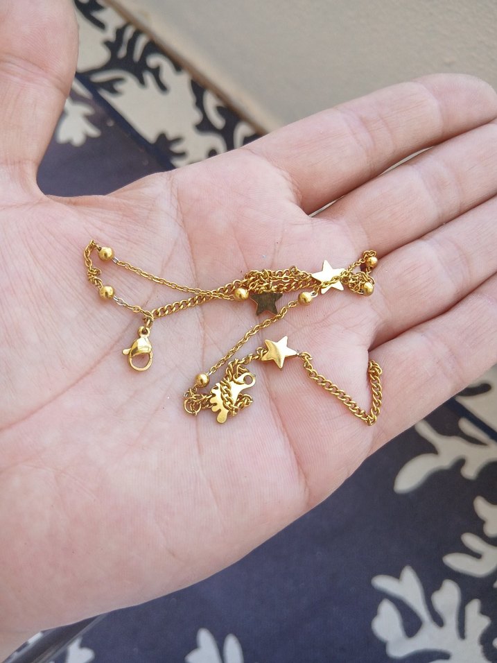 Altın renkli, zincir detaylı ve yıldız figürlü kadın el zinciri. Minimalist ve bohem tarzda, günlük kullanıma uygun, renkli bir aksesuar. ✨