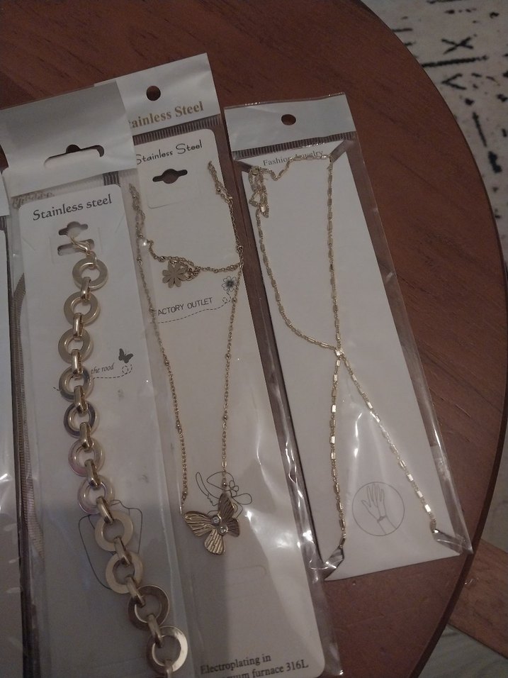 Paslanmaz çelikten yapılmış, zincir detaylı altın renkli el zincirleri. Parlak görünümü ve minimal bohem tarzı ile günlük kullanıma uygun. ✨ şahmeran hariç ilk 5 görsel 150 lira Şahmeran 200 lira