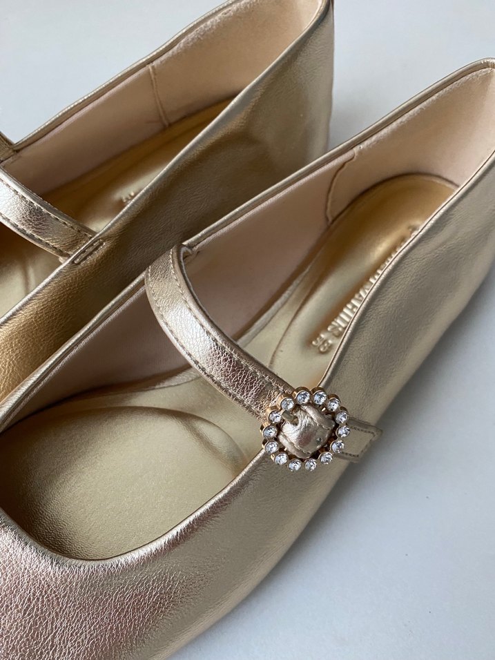 Kadın Altın Renkli Dolgu Topuklu Tokalı Babet