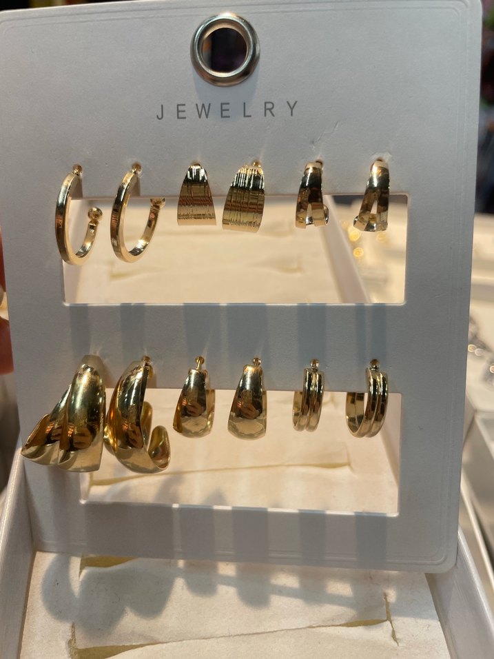Parlak altın renkli, tokalı mini küpe seti, günlük kullanım için minimalist tarzda uygun. JEWELRY ✨