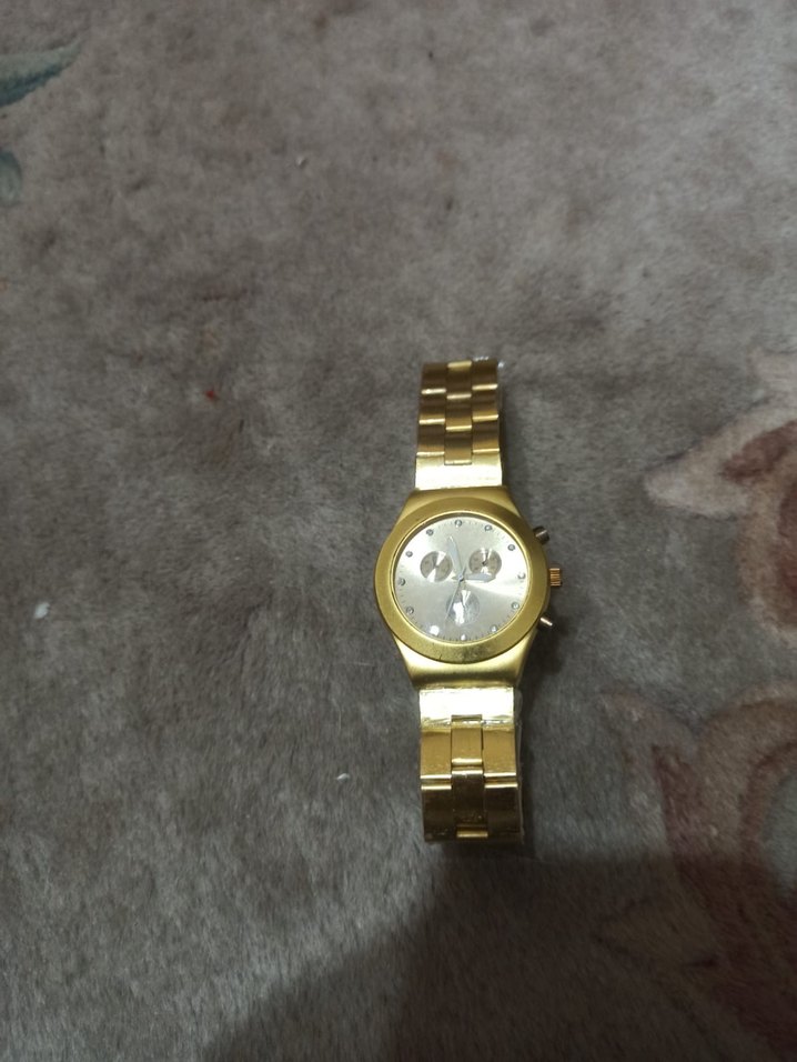 Parlak altın renkli, minimalist tasarımlı ve kemerli kayışa sahip kadın kol saati. saat yurt dışından bana hediye geldi erkek de kullanabilir kadın da kullanabilir sıfır üründür saatin alt kısmında back stStainless yazıyor⌚