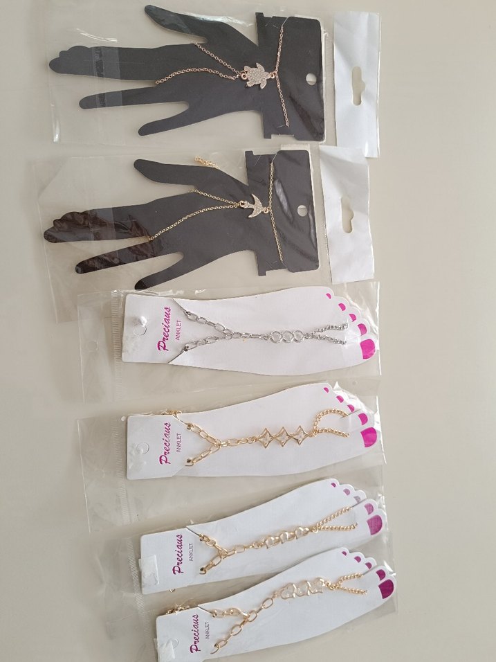 Altın renkli, payetli detaylara sahip kadın el zincirleri. Günlük kullanıma uygun bohem desenli şık aksesuarlar. ✨2 el cinciri 4 ayak zinciri vardır tane 50 tldir