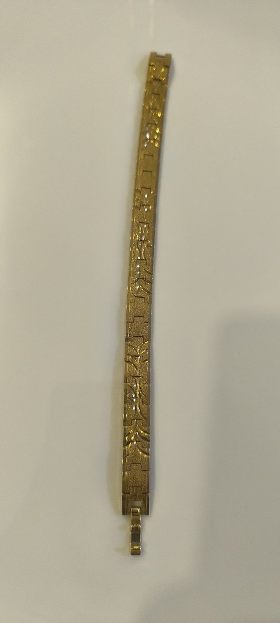 Parlak altın renkli, yılan desenli ve yarıklı tasarıma sahip kadın bilekliği, minimal ve dikkat çekici bir stile sahiptir.