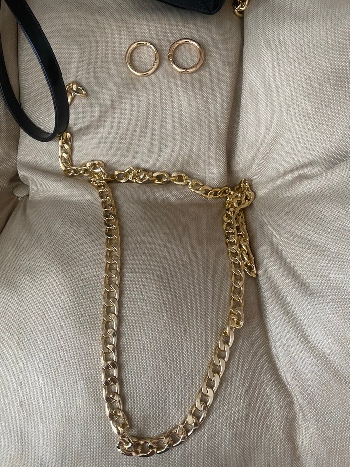 Parlak görünüme sahip, detaylı altın zincirden oluşan kadın çanta zinciri. Minimalist ve modaya uygun tarzda, günlük kullanım için ideal. 120 cm✨
