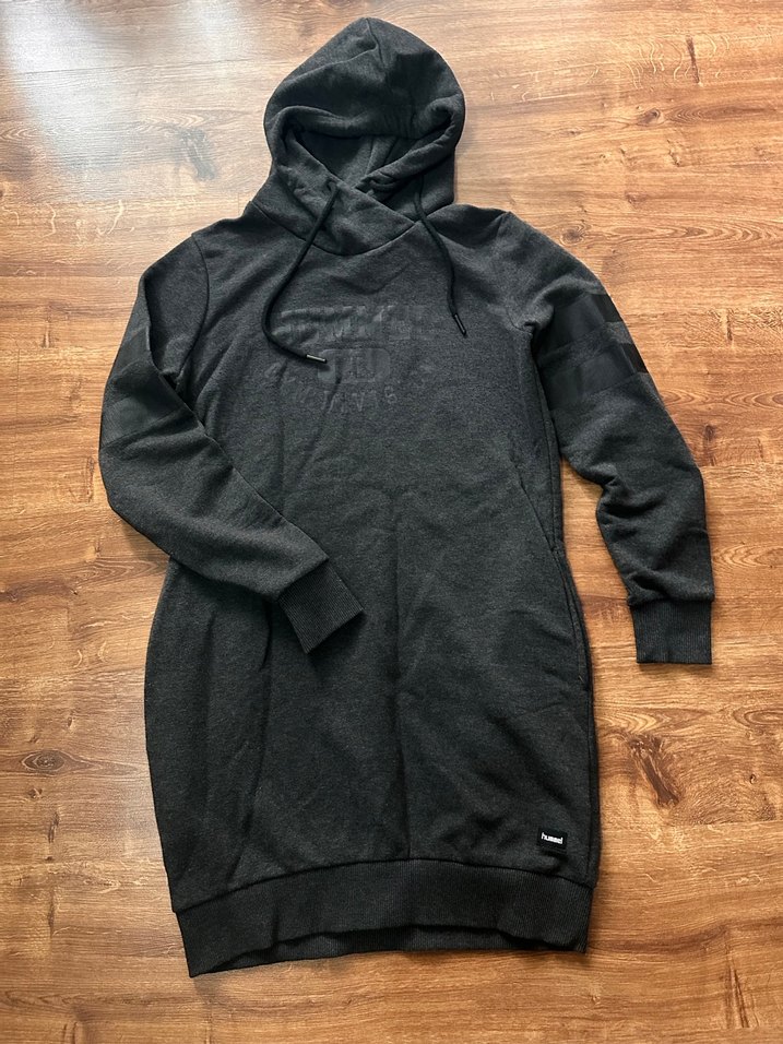 Kadınlar için antrasit renkli, yüksek yakalı ve uzun kollu, bol kesim midi uzunluğunda sweatshirt. Yumuşak ve sıcak kumaştan, günlük kullanım için rahat ve şık sokak stili sunar.