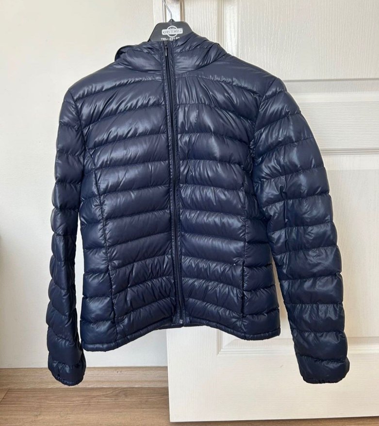 Bennetton marka Az kullanılmış Kadınlar için şişme mont, fitted kesim, kapişonlu ve fermuarlı ön dayalı Antrasit rüzgar geçirmez kuş tüylü