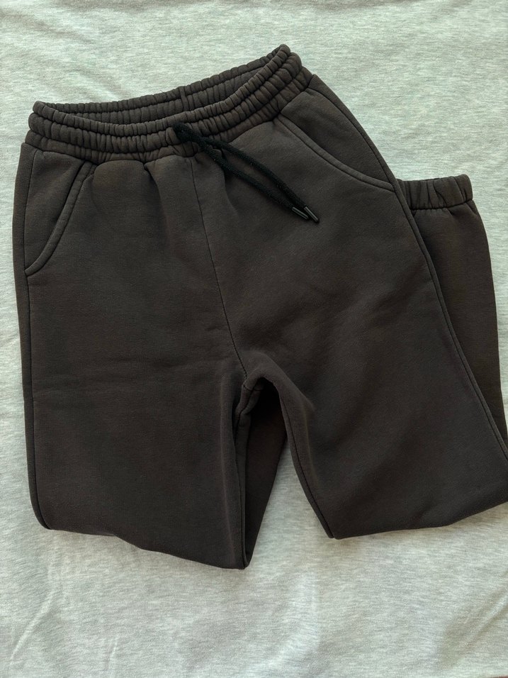Kadınlar için yumuşak, sıcak kumaştan yapılmış antrasit rahat kesim eşofman altı. Lastikli bel ve yan cepleriyle günlük kullanıma uygun, midi boy.