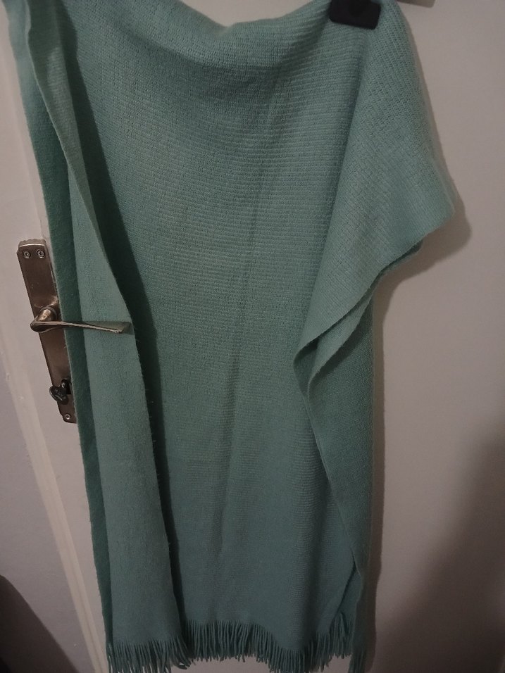 Turkuaz renkte yumuşak şal, 1 2 defa kullanıldı