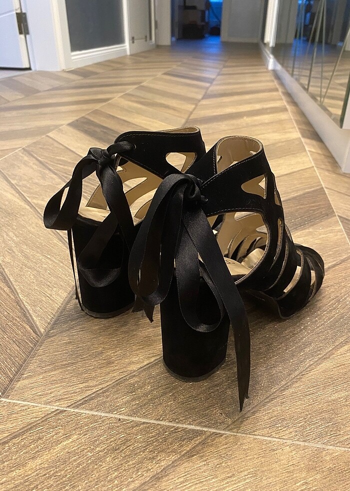 Kurdele detaylı topuklu ayakkabı 8cm topuk boyu
