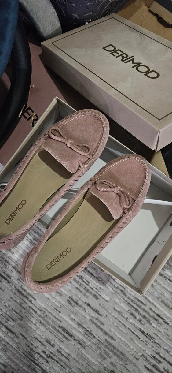 Derimod markalı, rahat ve günlük kullanıma uygun. 39 numara. Pudra renginde. Hiç kullanılmadı, temiz.