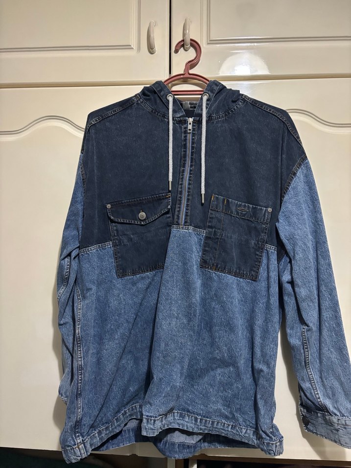 Unisex Bağcıklı Kapüşonlu Yıkamalı Kot Ceket