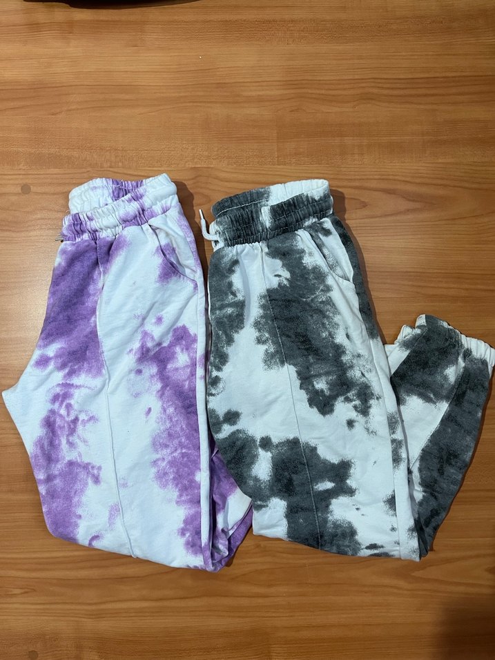 Kadınlar için bağlama desenli, pamuklu, rahat kesim ve midi boy eşofman. Mor ve gri tonlarında, günlük sokak stiline uygun rahat şıklık sunar.