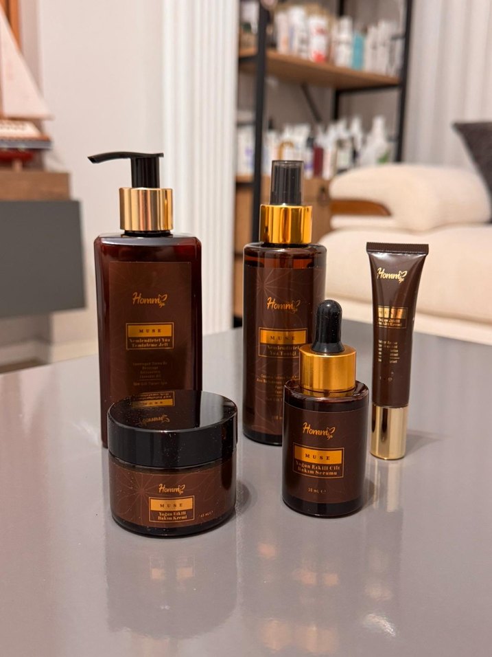 Kadın bakım seti; nemlendirici losyon, serum, göz kremi ve temizleyici ürünlerden oluşur. Kahverengi ve altın detaylı şişelerde.Tekli de satılmaktadır detaylı bilgi için yazabilirsiniz