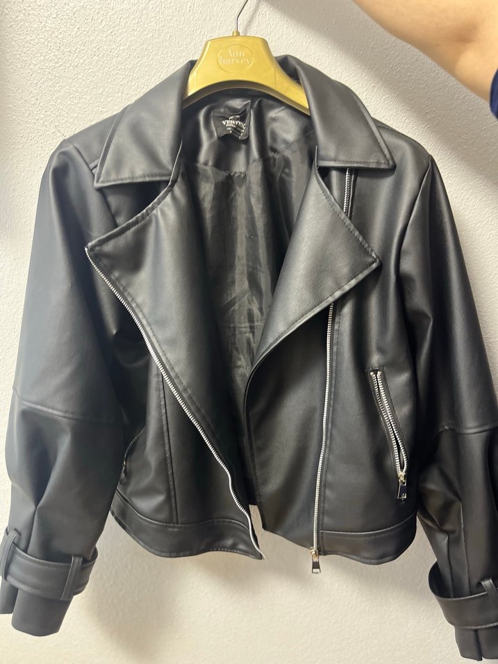 kadın balon kol siyah deri ceket