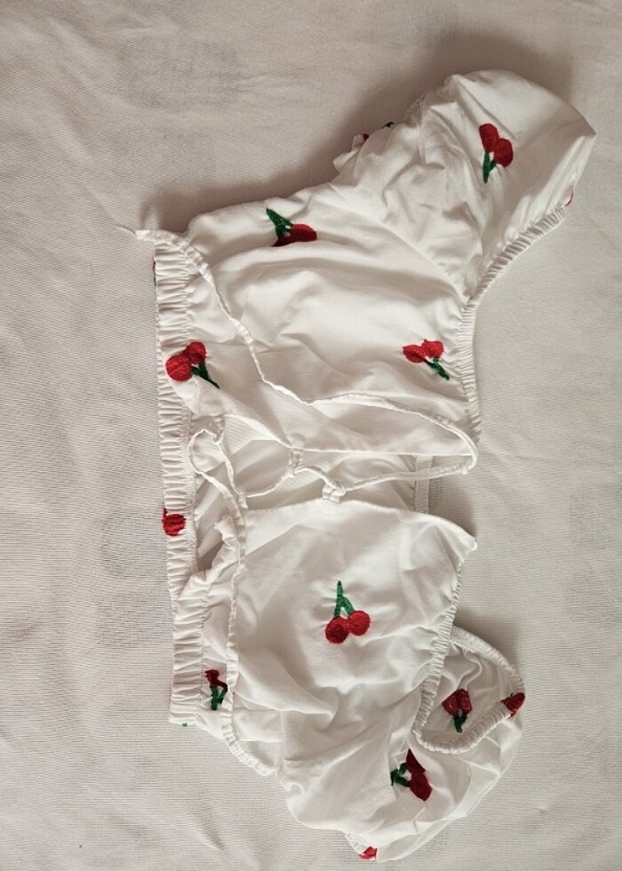 Kadın Balon kollu kayık yaka Kiraz nakışlı crop top