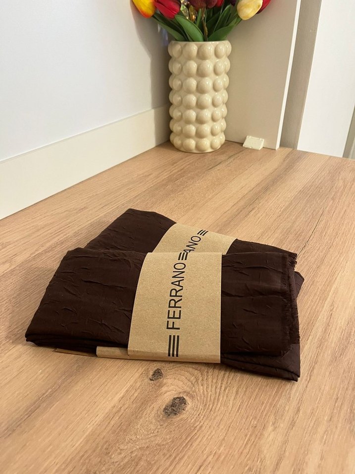 Kadınlar için koyu kahverengi süetten yapılmış, elastik detaylı, bohem ve rahat bir sarma şal. Sıcaklık ve nostaljik bir dokunuş sağlar.