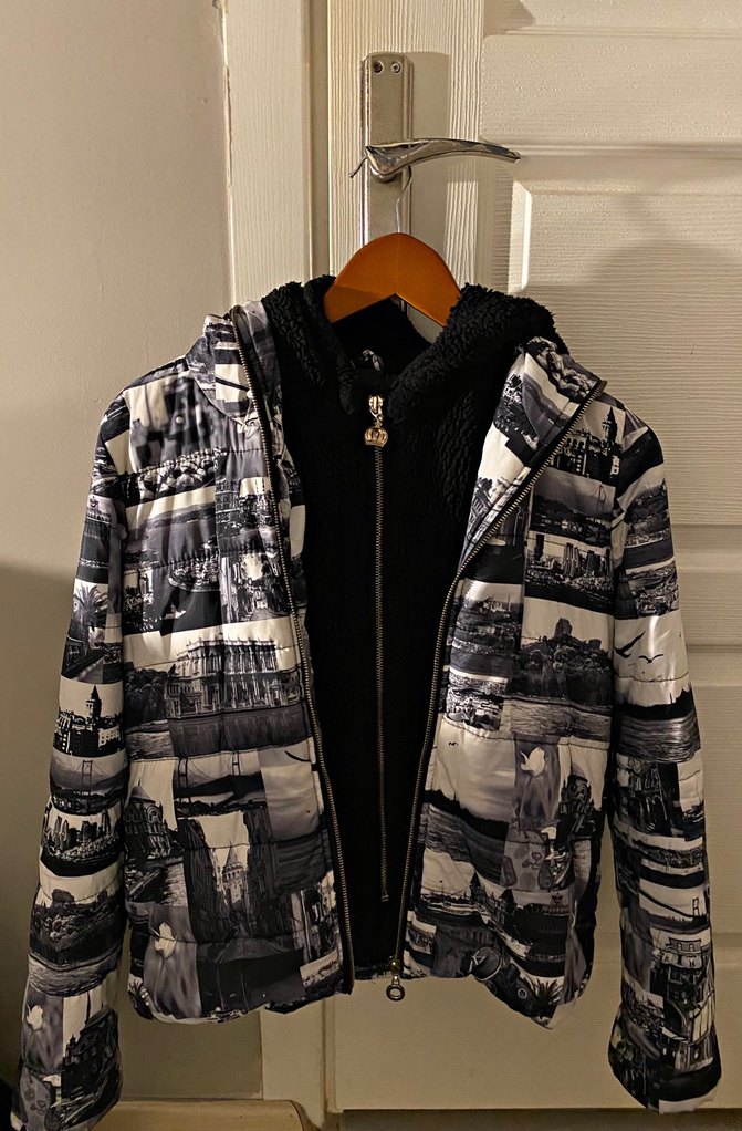 Kadın iki fermuarlı çift taraflı baskılı collezione mont.Sıcak tutar,ve yumuşak dokuludur.Aldığımda iç tarafı hafif yırtıktı fotoğrafta gösterdiğim gibi dikildi belli olmuyor.S bedendir.Geri iade yoktur.