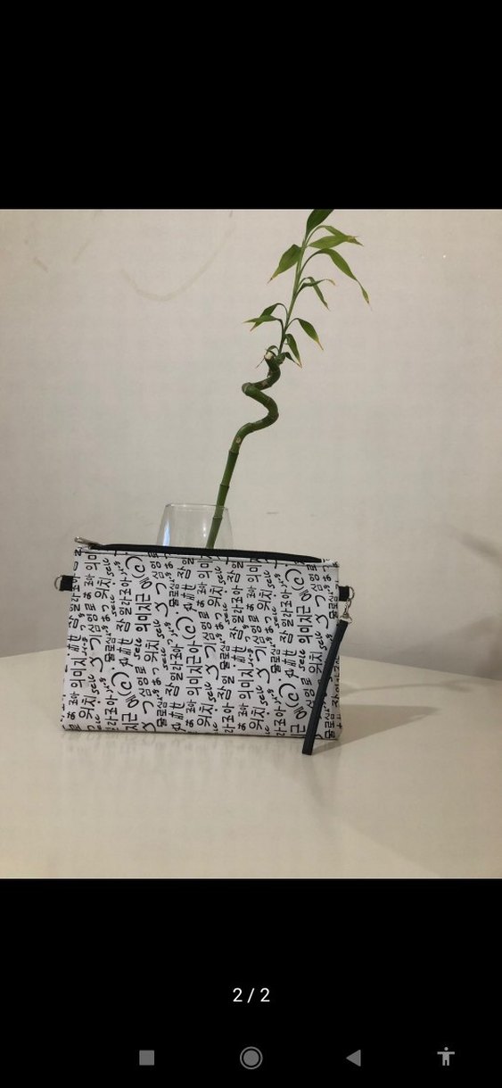 Kadınlar için baskılı desenli gri beyaz sentetik kumaştan, fermuarlı portföy çanta. Minimalist ve avangart tarzda, günlük kullanıma uygun bir model. Yazılı karakterler içerir.
