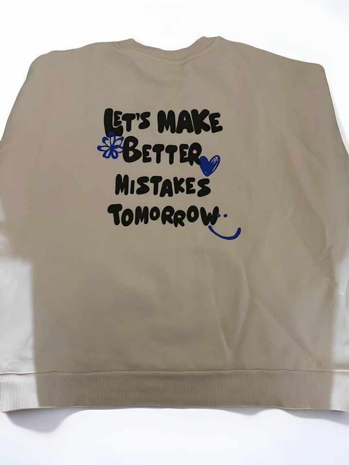 Kadınlar için pamuklu, uzun kollu, ve salaş kesim sweatshirt. Sırtında siyah ve mavi renklerde baskılı motive edici mesaj bulunur. Minimalist ve günlük kullanıma uygundur.