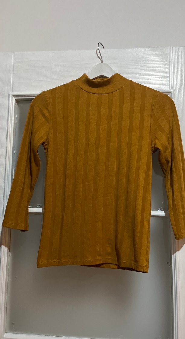 Bej renkli, balıkçı yaka ve uzun kollu, fitilli dokulu kadın trikosudur. Yumuşak keten kumaştan üretilmiştir, günlük kullanıma uygundur.