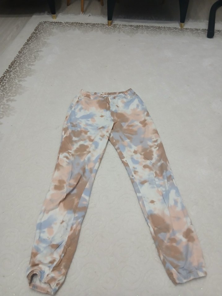 Kadınlar için pastel tonlarda batik desenli, rahat kesim ve midi boy eşofman. Yumuşak sentetik kumaştan, günlük rahat şıklık sunar.