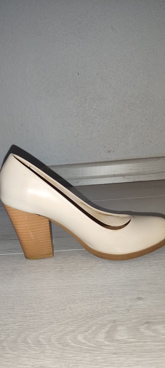 Bej blok topuklu stilettolar, ofis için uygun modern klasik ve zahmetsiz şıklık sunar. Hafif, desensiz tasarım ve rahat kauçuk taban içerir.