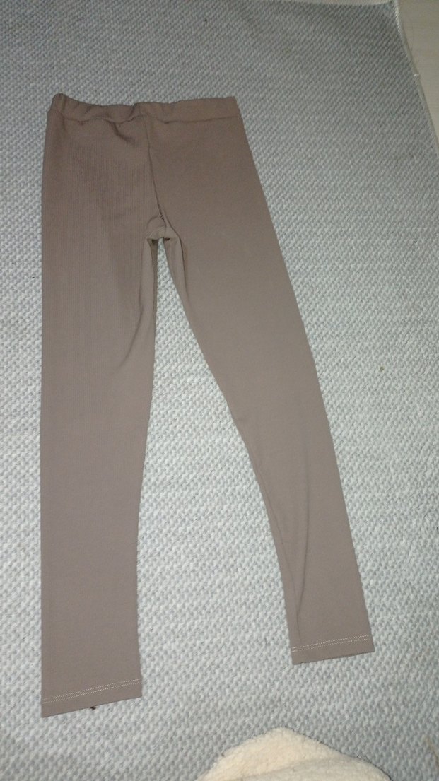 kadınlar için bej renkli, dar kesim taytlar. Düz ve desen içermeyen, yumuşak sentetik kumaştan yapılmıştır. Temel ve normcore tarzında, zahmetsiz şıklık sunar.