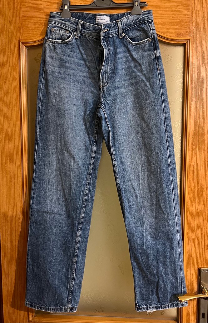 Kadınlar için bej renkli, dayanıklı denimden yapılmış, normal boyda ve regular fit pantolon. Tokalı detaylı, sade ve günlük kullanıma uygun tarzda.