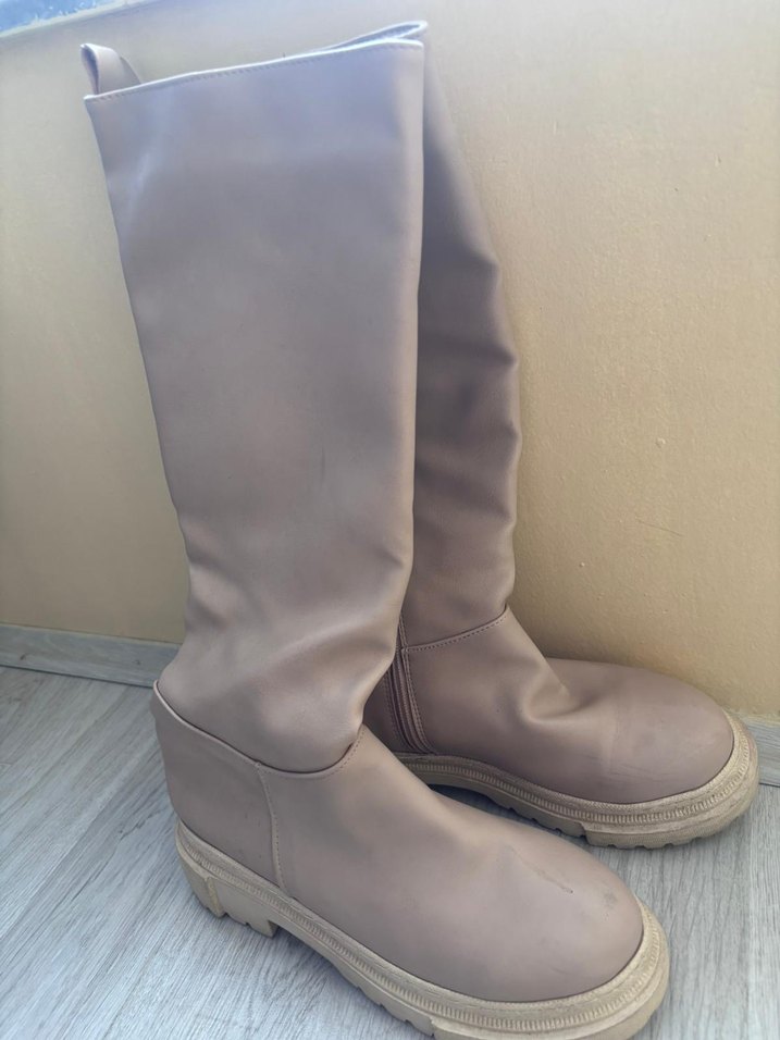 çok az giyildi temiz ürün Bej renkli, dizüstü çizmeler stiletto topuklu ve deseniz kauçuk malzemeden yapılmıştır. Günlük kullanıma uygun, rahat ve şık bir tasarıma sahiptir.