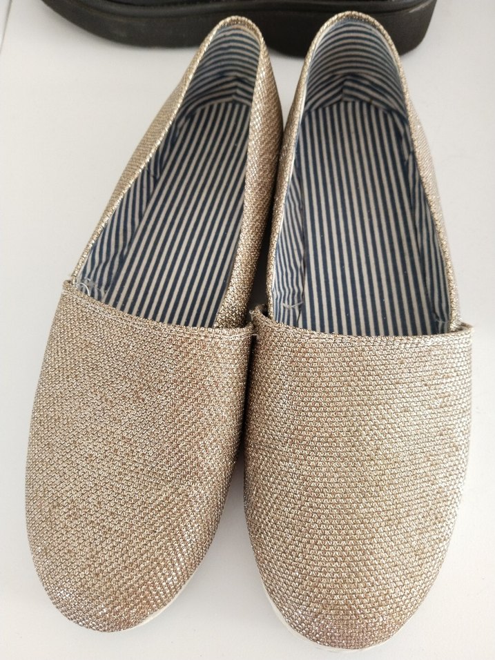 Bej renkli, dolgu topuklu kadın espadril ayakkabılar. Sentetik kumaştan yapılmış, pileli detaylara sahip. Minimalist ve çağdaş tasarım, günlük kullanım için uygundur.