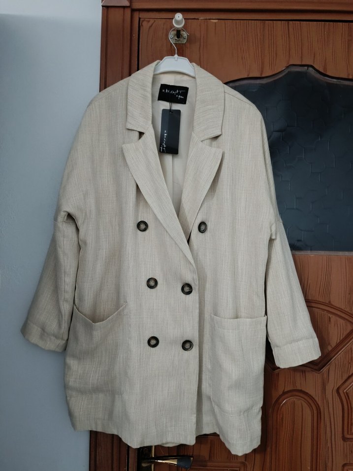 Kadın Bej Düğmeli Keten Blazer