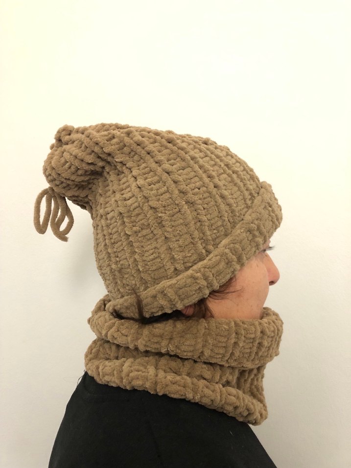 Bej renkli, kalın örgü dokulu, bohem tarzda kadın bere ve boyunluk seti. Sıcak tutar ve rahat bir kullanım sağlar. Yumuşacıktır.
