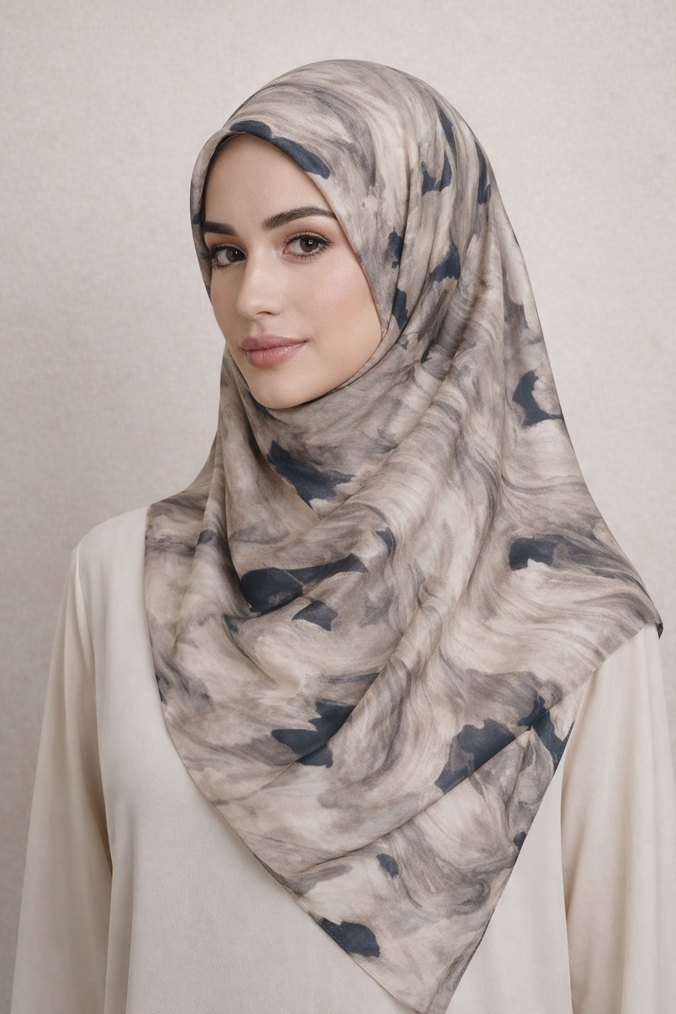 Kadın Bej Gri Dökümlü pamuk eşarp
