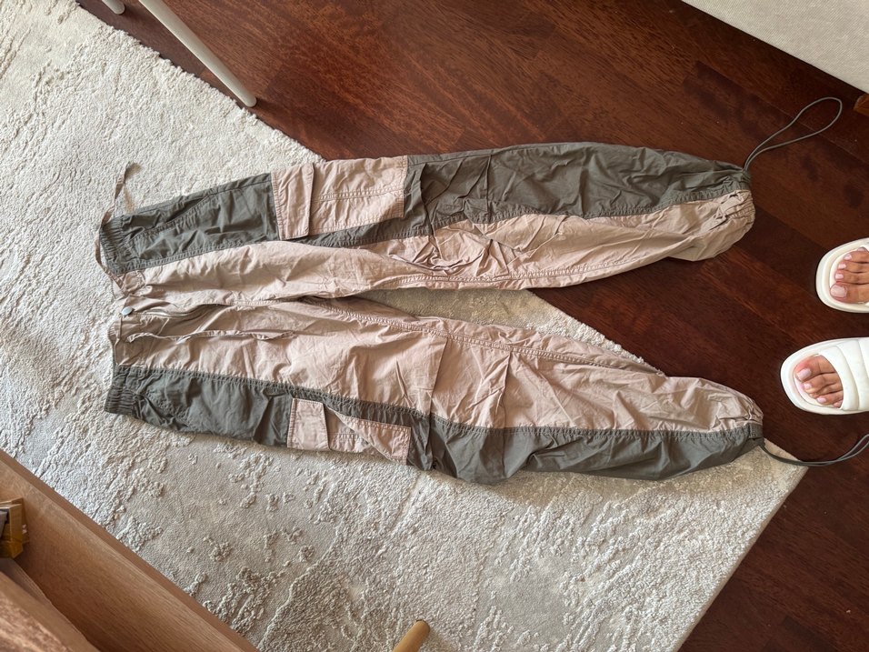 Kadın Bej Gri Pantolon kargo pant lastikli