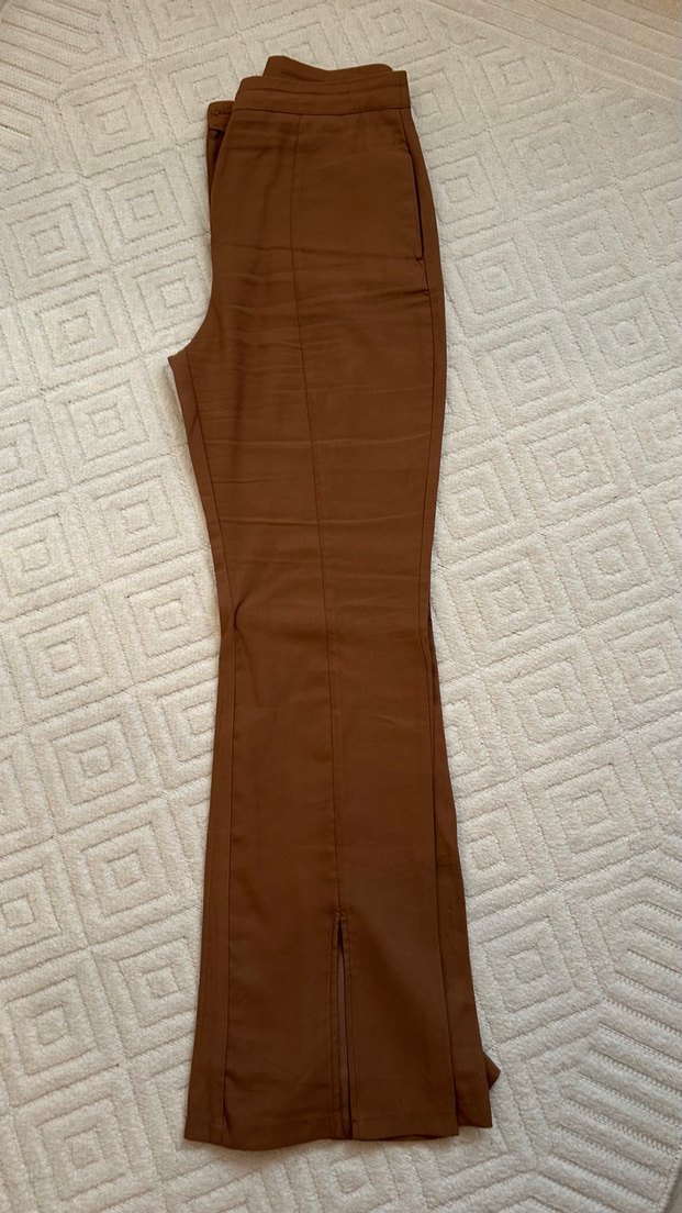 Düz bej kumaştan, fermuarlı detaylara sahip, midi boy ve dar kesim kadın pantolonu. Günlük sokak stiline uygun. doğum sonrası eski kiloma gelemedim hepsi yep yeni satmak durumundayım gönül rahatlığıyla alabilirsiniz