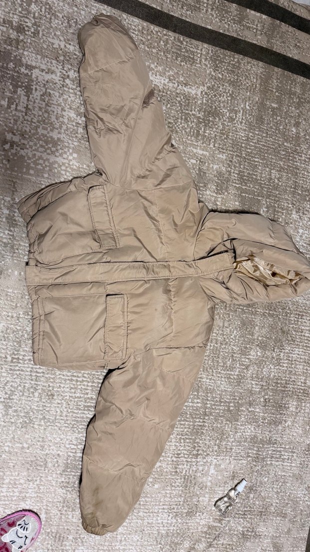 Kadın Bej Kapüşonlu Kısa Kış Montu