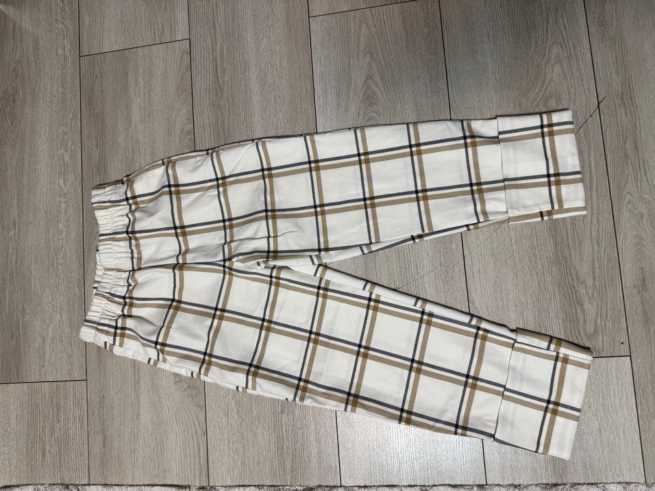Kadın Bej Kareli Midi Kumaş Pantolon