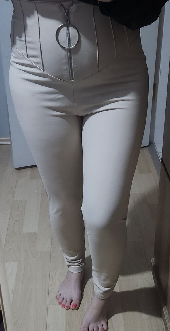 Bej renkte, kemerli ve dar kesim olan bu kadın tayt, normal midi boyda ve yumuşak deri kumaştan üretilmiştir. Trendy casual sokak stili için uygundur.