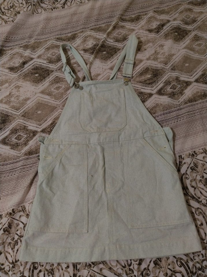 Bej keten kumaştan, askılı ve bel kemerli, bol kesimli midi uzunlukta salopet elbise. Günlük rahat kullanıma uygun, kolsuz ve bohem tarzda.