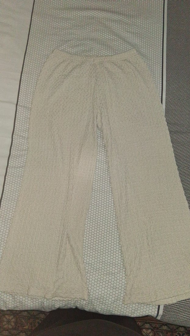 Kadın Bej Keten Pilili Bol Kesim Pantolon 2adetvarpembevebej