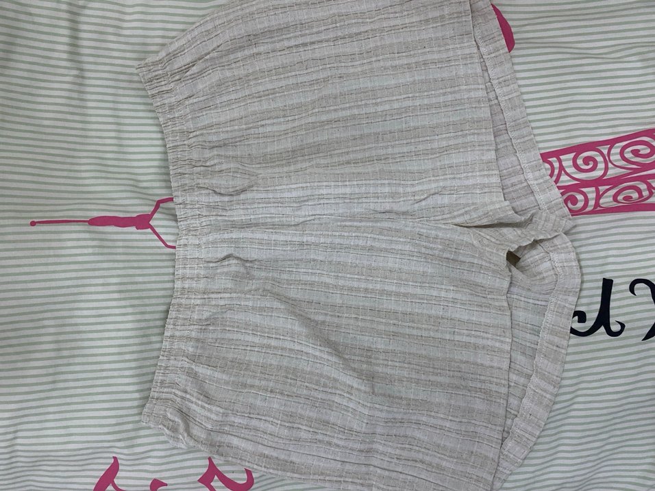 Bej keten kumaştan, pilili ve rahat kesim midi uzunluğunda kadın pantolonu. Günlük kullanım için uygun, sade ve konforlu tarzda.