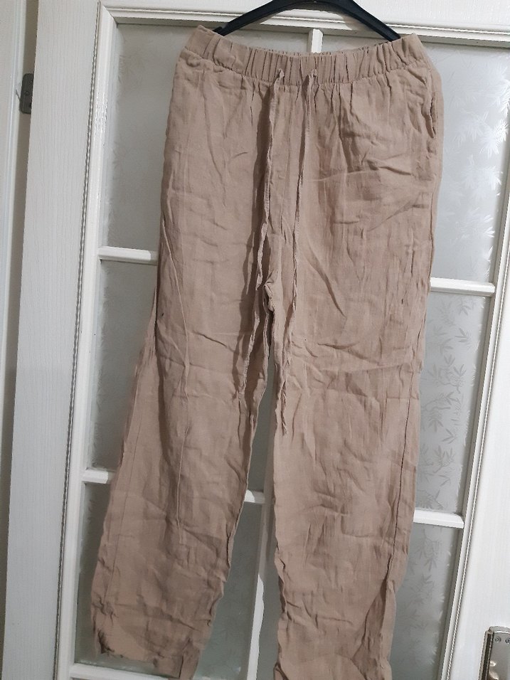 Kadın Bej Keten Salaş Pantolon