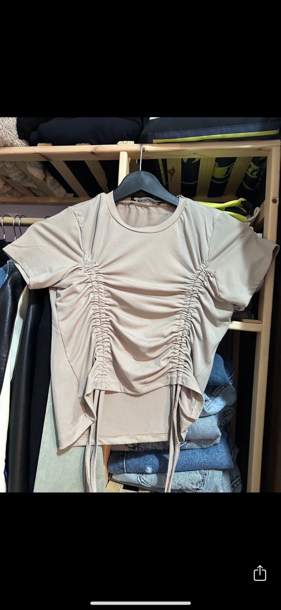 Kadın Bej Kısa Kollu Büzgülü crop