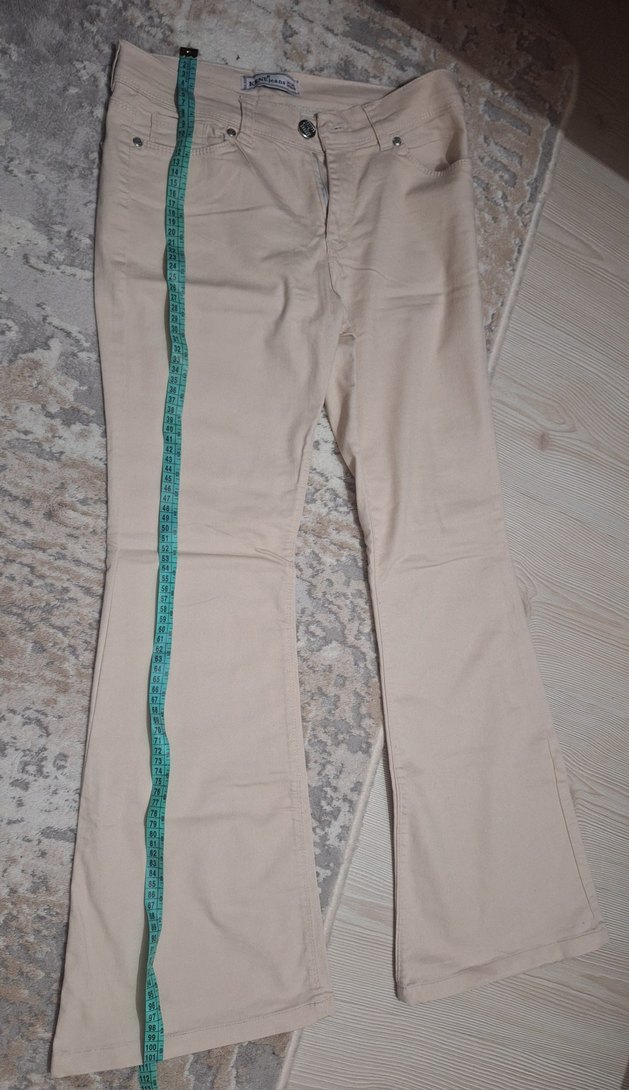 Kadınlar için bej kumaş pantolon, normal boy ve regular fit. Kemerli ve desensiz, günlük sokak stili için uygundur.
