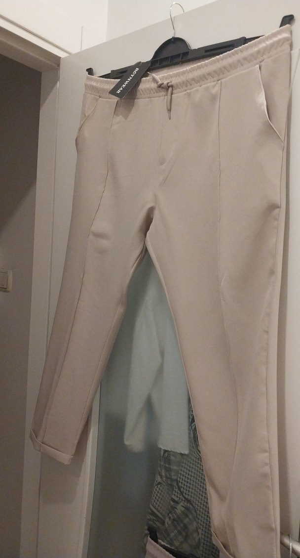 Bej renkli, regular fit ve midi boy kadın kumaş pantolon. Günlük kullanım için uygun, desen içermeyen sentetik kumaştan, rahat ve şık görünümlü.