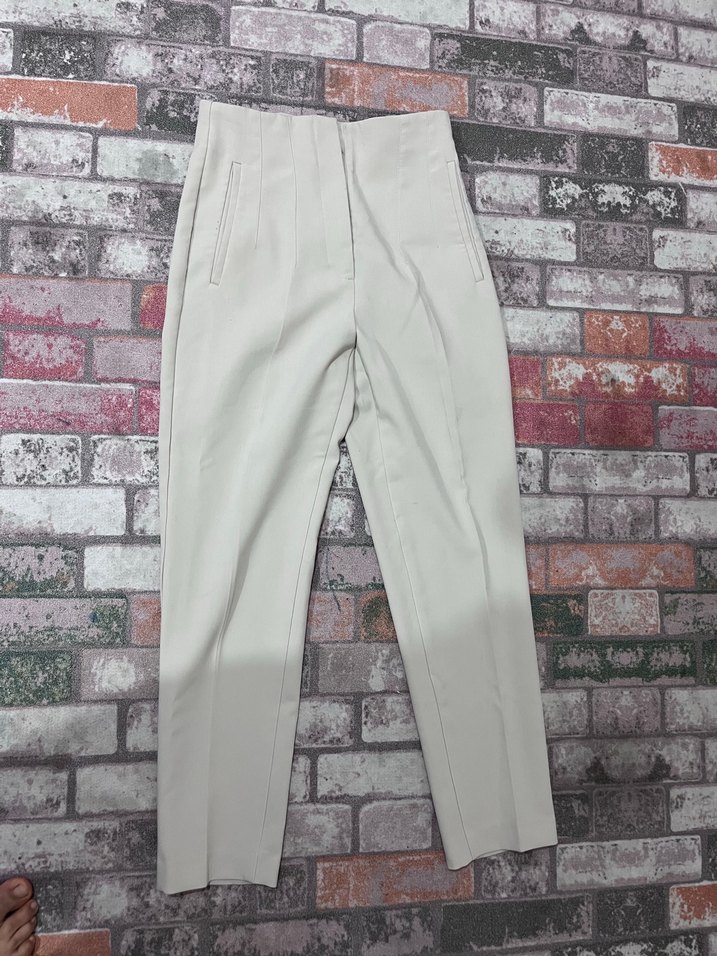 Kadın bej kumaş pantolon, regular fit ve midi boyda. Yumuşak sentetik kumaştan, ofis için şık ve zahmetsiz bir görünüm sunar.