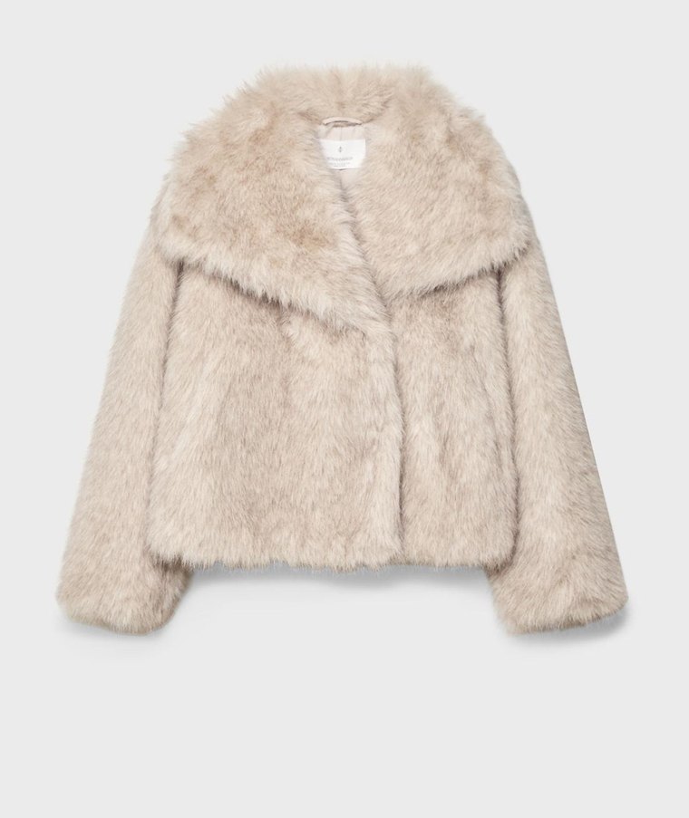 Kadınlar için bej renkli, kürk detaylı, uzun kollu ve normal kesim midi uzunluğunda ceket. Günlük kullanıma uygun, klasik ve rahat normcore tarzında.